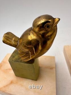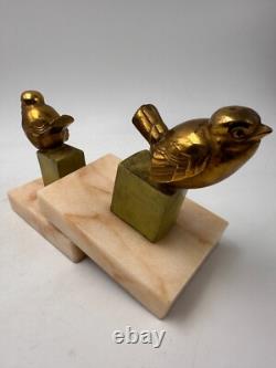Pair of bookends made of regulus alloy, depicting two birds on a beige marble base. 7.5 cm, Total weight: 1.4 kg.